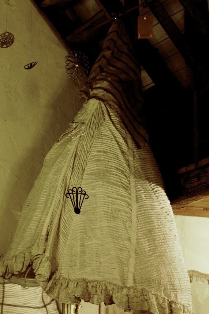 Il colpo d’occhio ci seduce istantaneamente: colori forti, specchi dorati, il tulle vaporoso che sbuca inaspettato da qualche angolo. Un mix tra allure rinascimentale, come il palazzo che ci ospita, e modernità contemporanea.