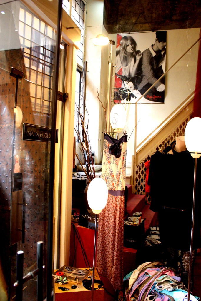Ma la cosa che davvero più ci piace di Matta e Goldoni è il su misura: tutti i loro pezzi possono essere “tagliati addosso” alle clienti e personalizzati in termini di colori, fantasie, tessuti… E chi vuol giocare alla “piccola stilista” può proporre loro l’idea di un abito e vederla trasformarsi in realtà sotto la sapiente ed esperta supervisione di Betta e di Maria Luisa. Niente di più distante insomma dalla fast-fashion che invade massicciamente le nostre strade: in questo spazio la moda assomiglia piuttosto ad un pizzo macramè… un intreccio raffinato ed elaborato tra gusto delle proprietarie, tendenze di stile e desideri delle clienti.