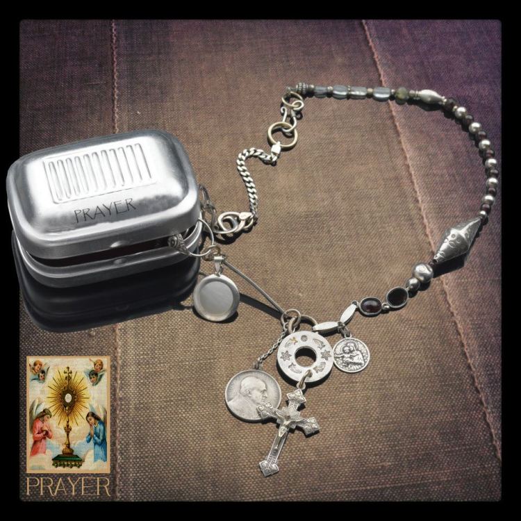 Le tue collane raccontano una storia che è fatta di tessere di più mosaici – se mi passi la metafora, dato che i mercatini dell’antiquariato sono la tua prima fonte di materiali… Che sensazione ti da’ il mischiare tutti questi elementi appartenuti a chissà chi?