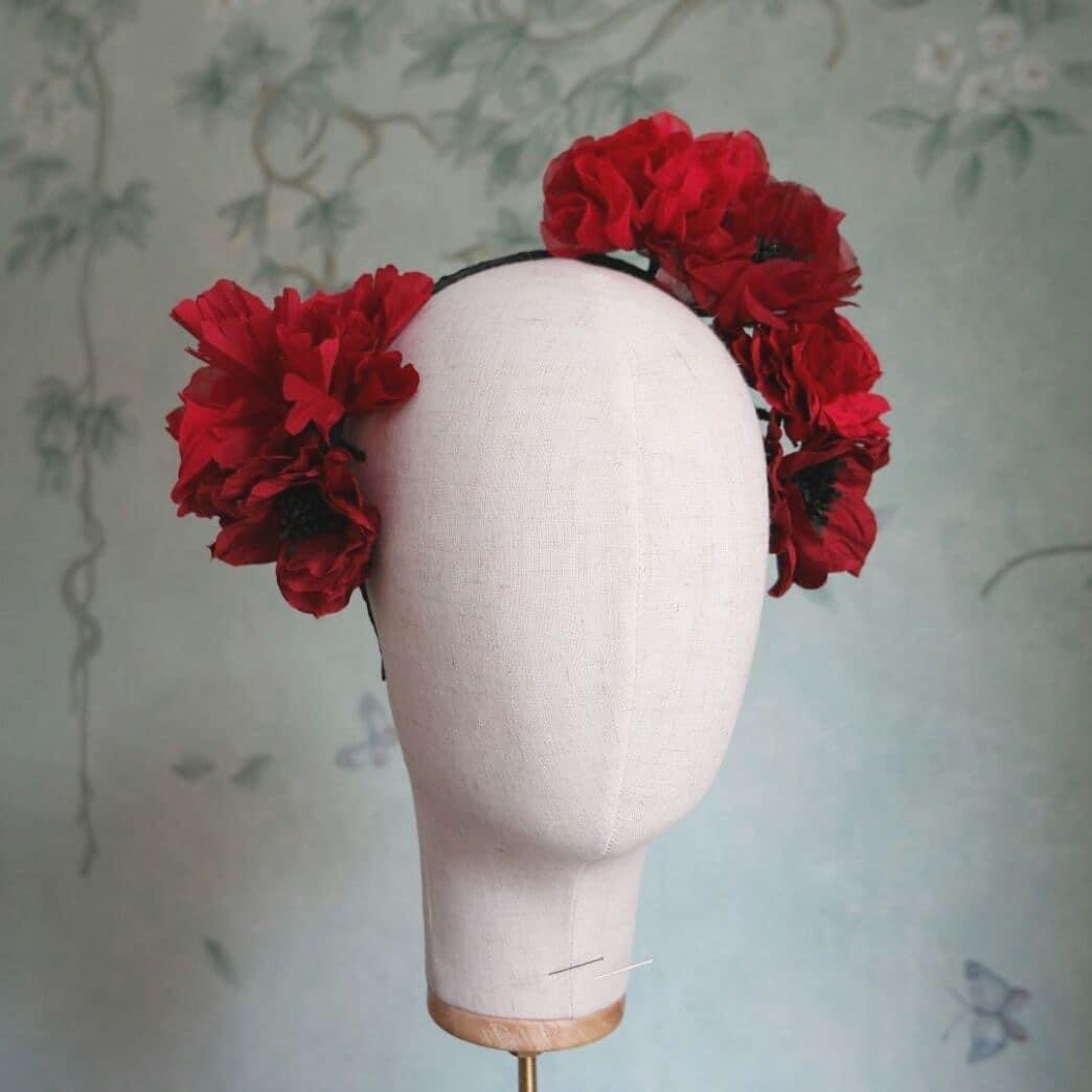 Mi brillano gli occhi quando vedo e indosso le sue creazioni: cerchietti, fascinator, turbanti, fiori di seta ( le peonie, che meraviglia!) headband, broches, bijoux e cappelli.