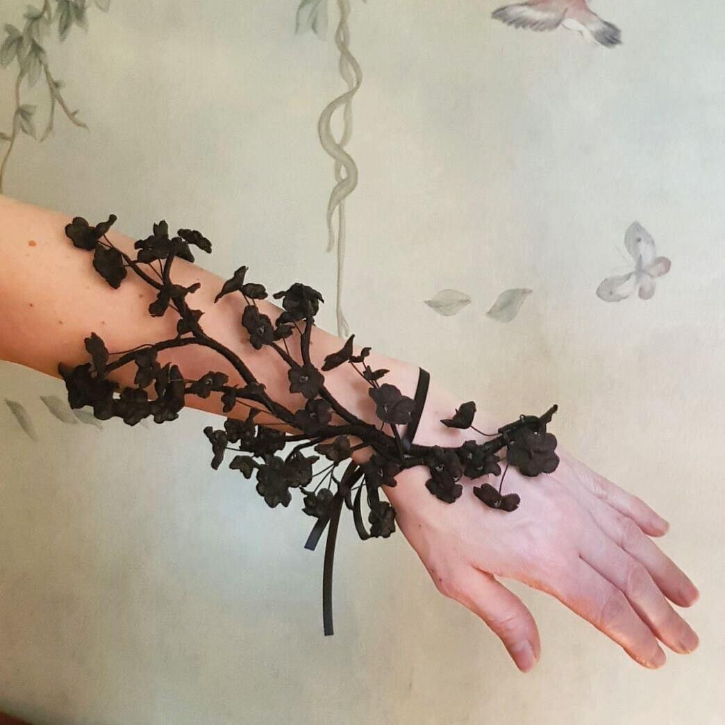 E i fiori, protagonisti anche di accessori da cerimonia e matrimoni ( come del resto tutte le altre creazioni di Officine Lamour in un viaggio che scorre dagli anni 20 – e anche prima !- ai giorni nostri! ) che Lara tinge, forma, ricama con una lavorazione lenta e appassionata che sarebbe bene conoscere per dare il giusto valore all’artigianalità.
