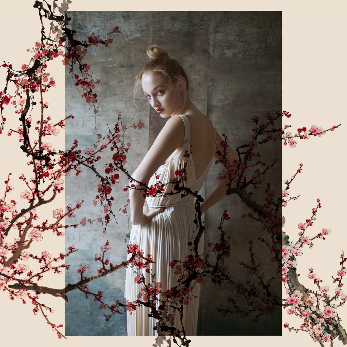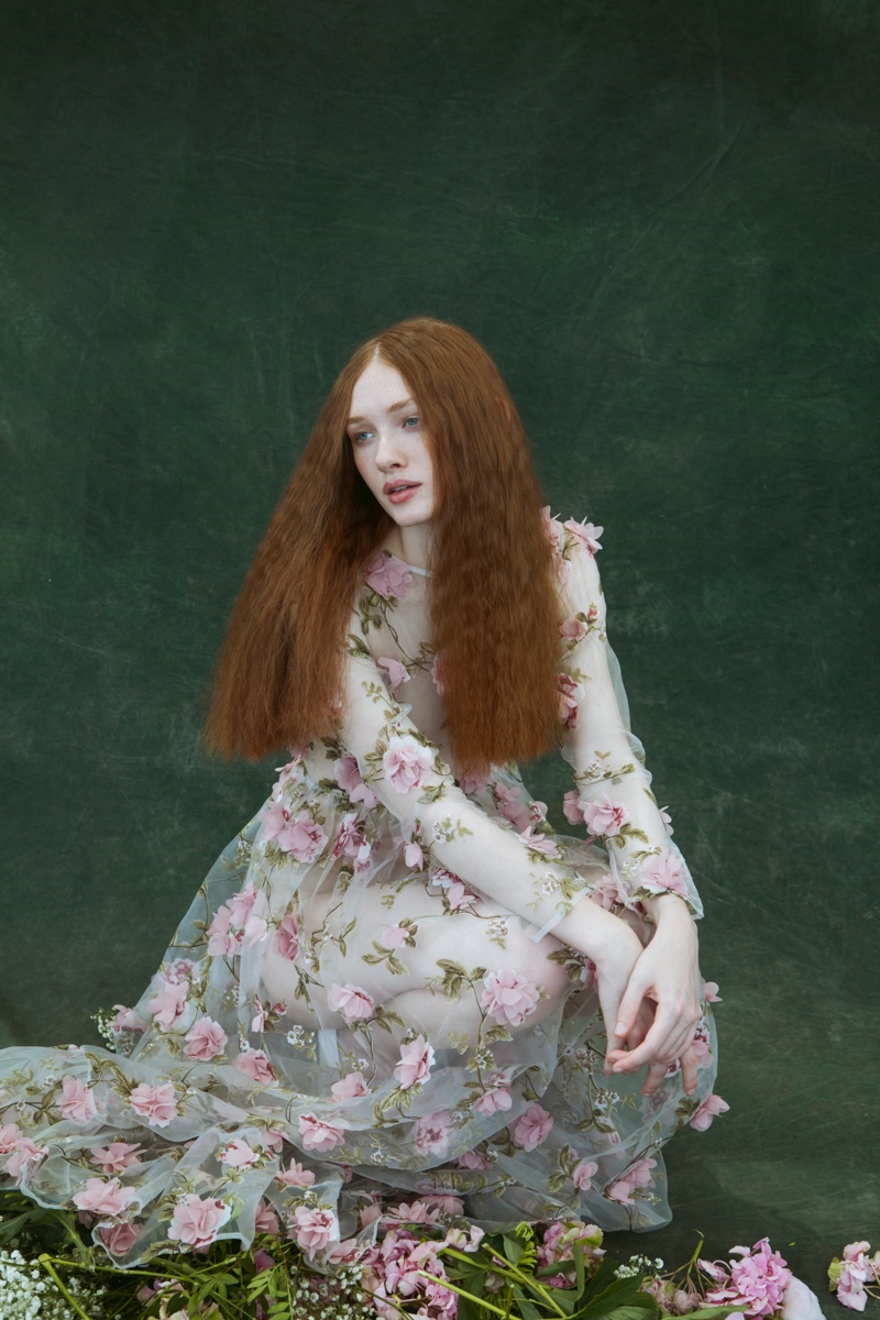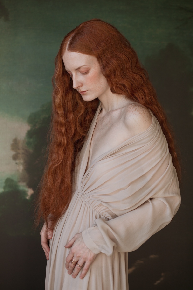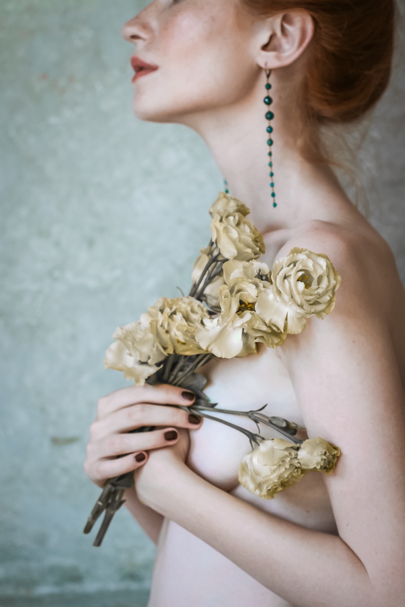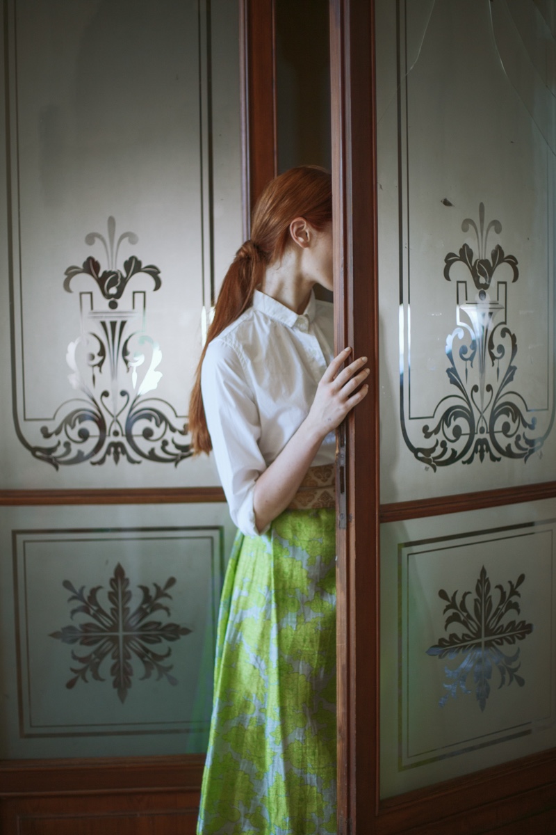 E allora le linee definite della composizione vengono esaltate dal dettaglio, dalla chioma fiammeggiante sull’incarnato diafano di una modella che è un continuum della macchina fotografica e dell’occhio di Monia.