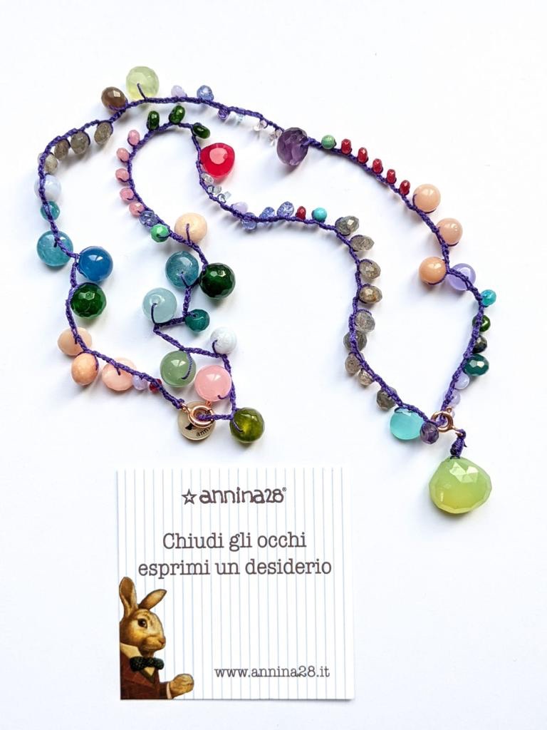 Bolognese DOC, il laboratorio di Annina si fa strada negli anni, proponendo gioielli – anche personalizzati – fatti di pazienza e fili intrecciati all’uncinetto con pietre naturali semipreziose ed elementi in argento 925 e argento in galvanica oro.