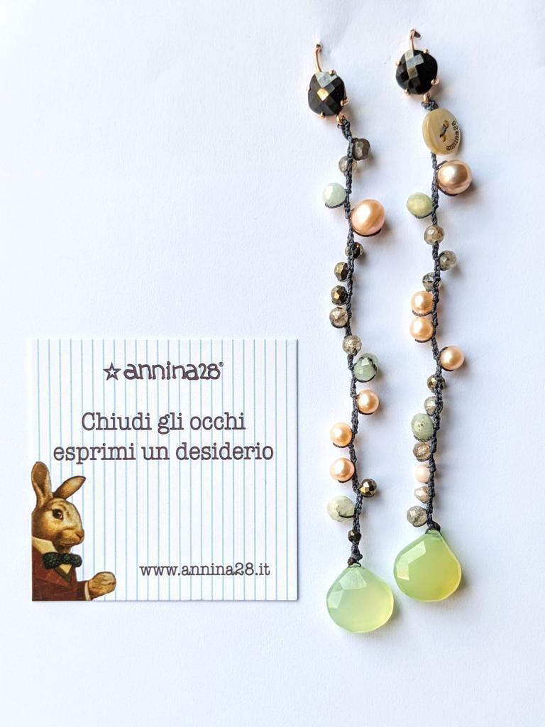 Nata come un passatempo, l’attività si trasforma ben presto per Annina in una vera e propria passione, in una sorta di personale dipendenza dove poter dare libero gioco alle proprie emozioni. Gli accostamenti delle pietre sono sempre espressione di un sentimento o di una suggestione, persino delle vibrazioni che le clienti le trasmettono quando ordinano un gioiello su misura… E sono sempre delicate, mai banali, rigorosamente diverse le une dalle altre e caratterizzate da un bottoncino in madreperla con inciso il logo Annina28 . Distintivamente romantiche e glamour, adatte a chi voglia coltivare uno stile personale e raffinato.
