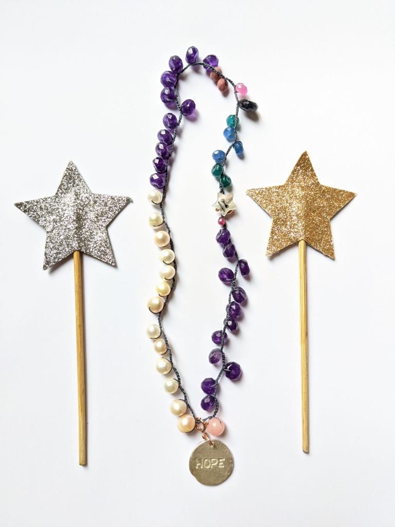 Si entusiasma quando parla delle sue creazioni, lasciando trasparire il piacere che sente nel fare il suo lavoro – che ormai questo è diventato a tutti gli effetti! – e nel poter liberamente esprimere la propria creatività in una dimensione non scandita da ritmi predefiniti e sempre uguale (non è raro, infatti, che collanine e braccialini prendano forma nella notte più inoltrata – n.d.r.) e dove il colore, in specie le tinte pastello accoglienti e di buon auspicio, domina incontrastato.