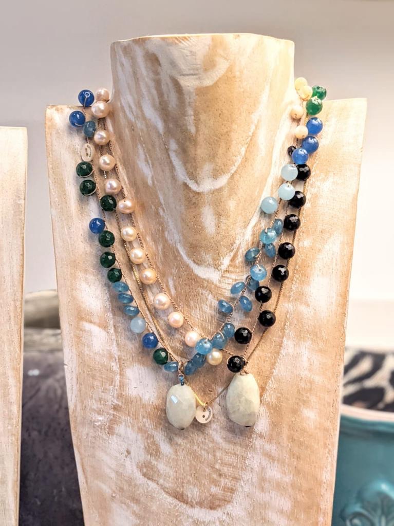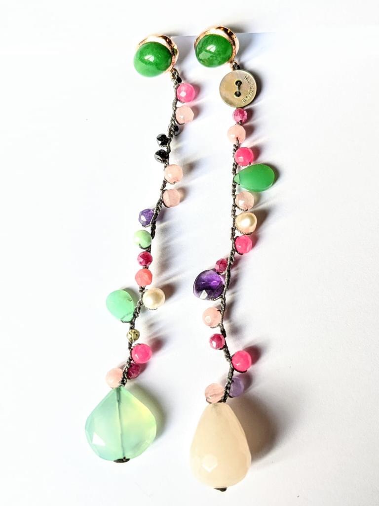 È così che perle, coralli, ametiste, lapislazzuli, tormaline e così via prendono a ballare in una danza armoniosa, originale e sempre calibrata, per diventare collane, bracciali, orecchini.