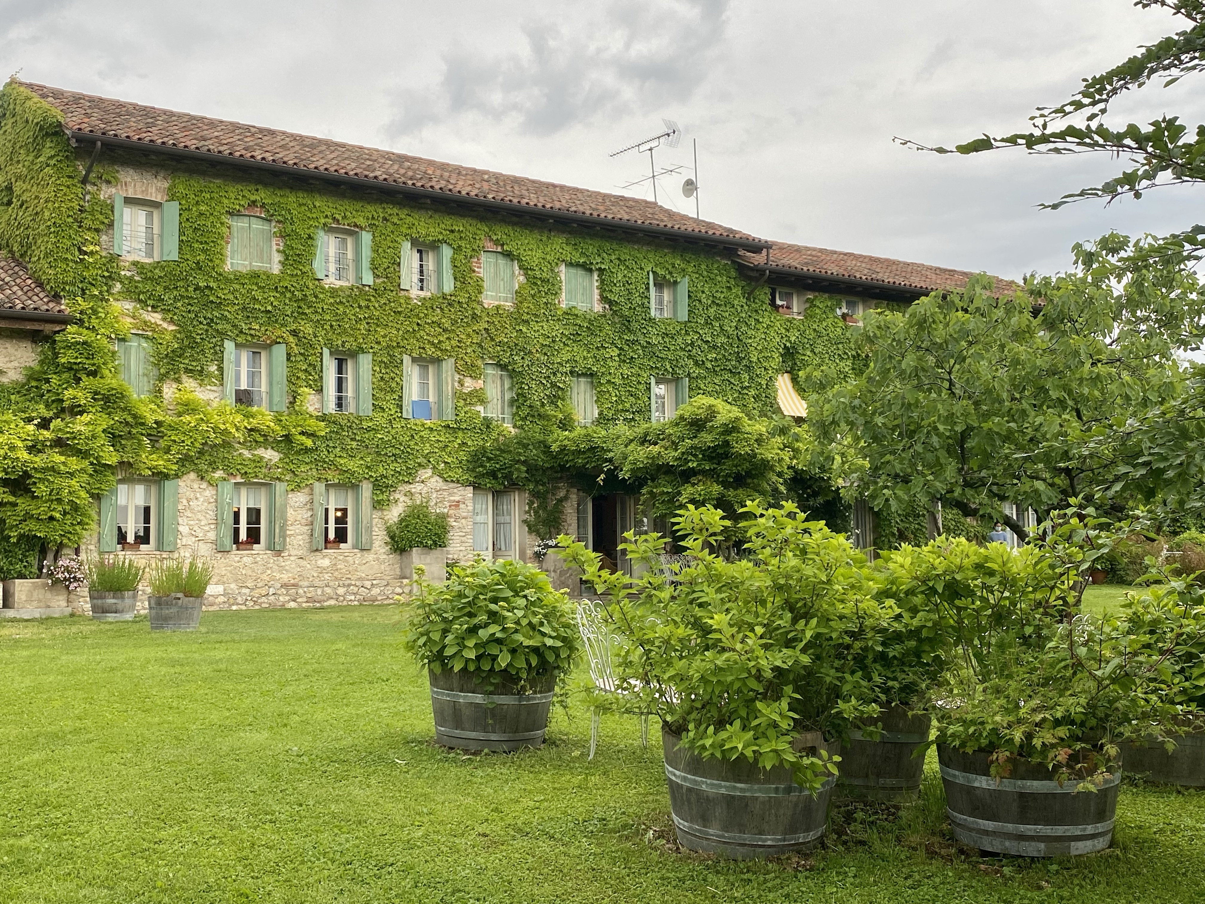 Appena arrivata in cima al Colle di Guarda, prossimo al borgo medievale di Collalto, osservo bene la scena che mi si para davanti. La quiete avvolgente ridona dignità al frinir dei grilli e al cinguettio degli uccelli , mentre le vigne e i cipressi, tutt’intorno, concorrono ad un’atmosfera di forte suggestione, che amplifica la bellezza romantica del Maso di Villa.